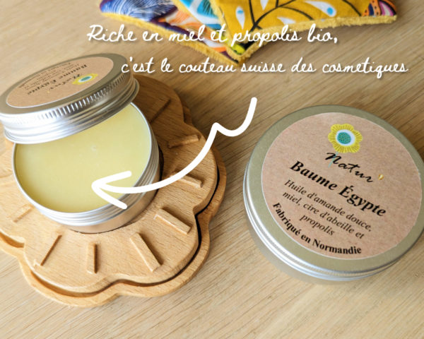 Découvrez notre baume d’Égypte, riche en miel et propolis Bio.